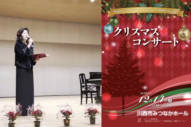 025年12月14日(日)川西みつなかホールにて第49回ピティナピアノコンペティション成績優秀者によるクリスマスコンサートを開催しました。