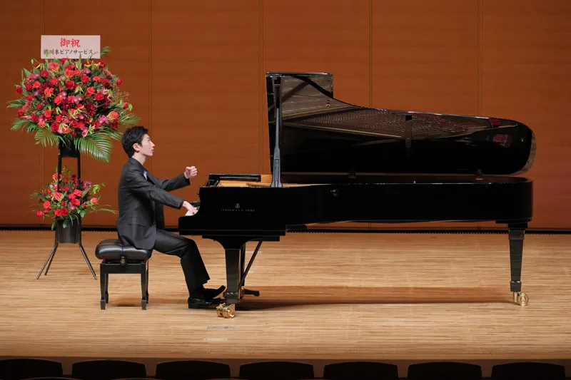 第2部のあとには、昨年のピティナ・ピアノコンペティション特級で銀賞を受賞された津野絢音さんが登場。ショパンの「ピアノ・ソナタ第3番」を演奏してくださいました。気品あふれる音色がホールを包み込むと、出演者のお子様たちもその指先の動きを食い入るように見つめていました。