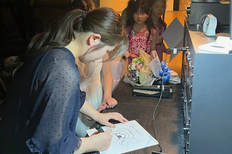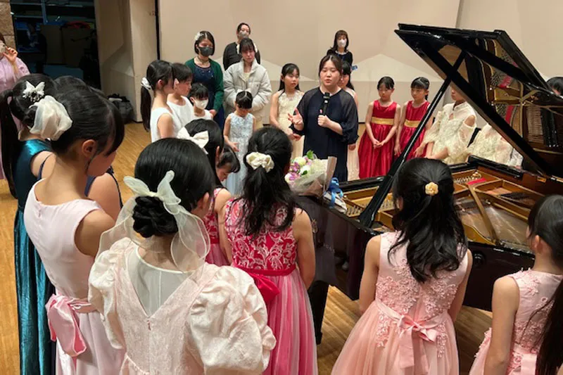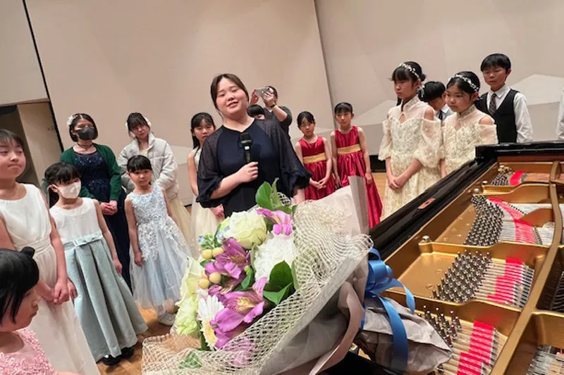舞台上ではピアノを使った交流会もあり、子どもたちと音楽を通してたくさんお話しできたことも心に残っています。「どうしたら思うような音が出るようになるのか」「トリルがうまくいかないときはどのように練習すればよいか」など、真剣な質問をもらい、自分の演奏をより良くしたいというまっすぐな気持ちに心を打たれました。幼い頃から夢を持ち、意欲的に学び続ける姿はとても輝いていて、私自身も大きな刺激と元気をもらいました。